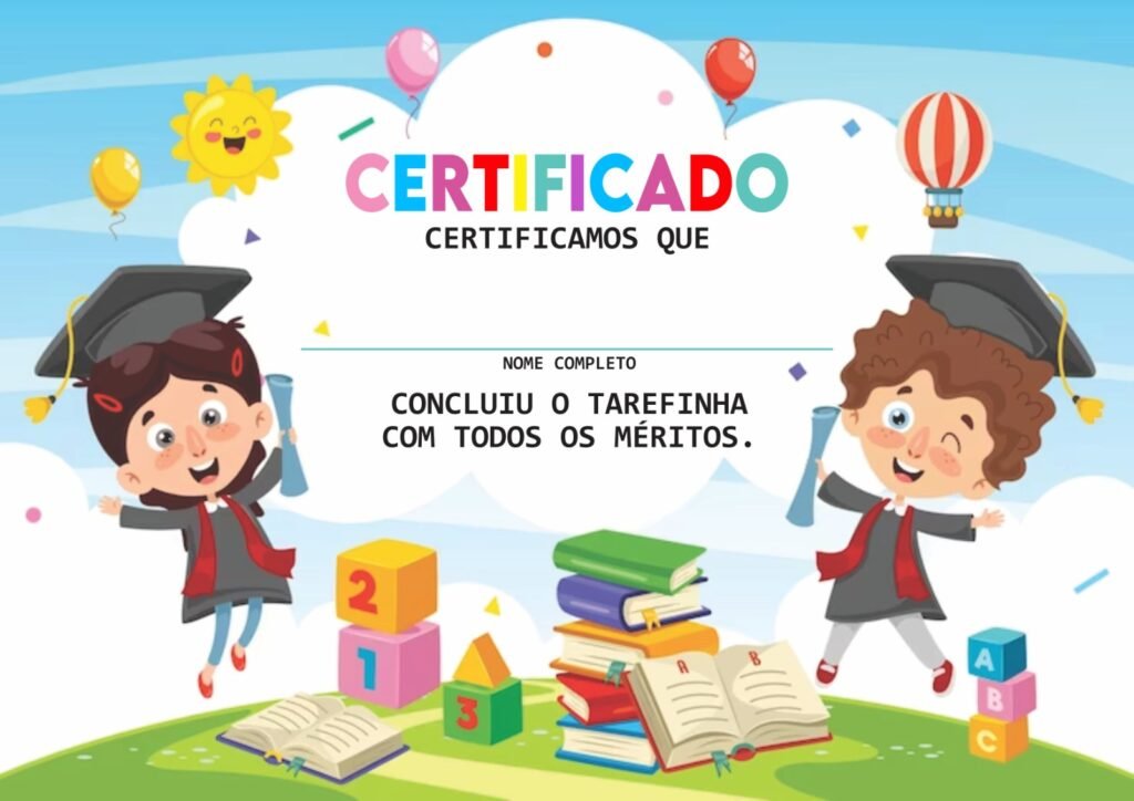 Temos uma surpresa para o seu pequeno, um certificado infantil para entrega-lo ao final das atividades.